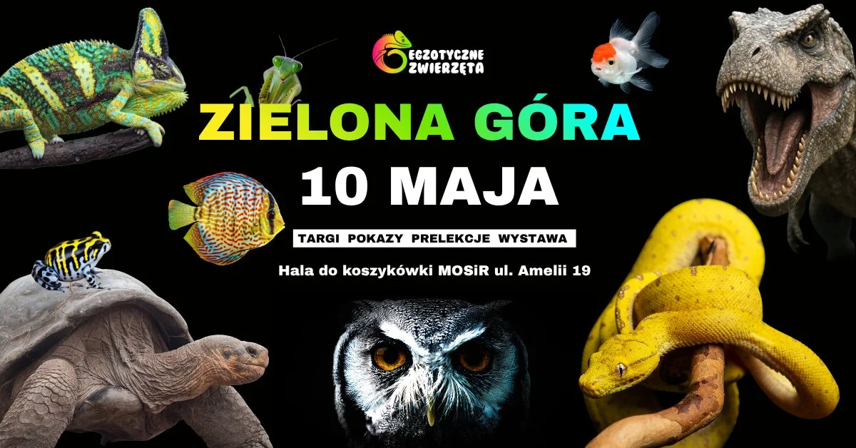 W Zielonej Górze szykuje się coś dla fanów zwierząt, roślin i nietypowych pokazów: wraca wydarzenie Egzotyczne Zwierzęta. W jednym miejscu pojawią się terrarystyka, akwarystyka, botanika, pająki, ptaki drapieżne i kilka mocnych atrakcji specjalnych — w tym zapowiadany 7-metrowy T. rex. To będzie ten typ imprezy, na którym każdy znajdzie coś dla siebie, więc warto mieć 10 maja na radarze.